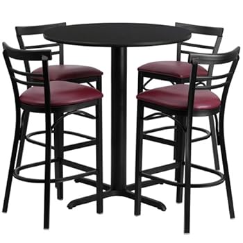 Flash Furniture 24'' Round Black Laminate Table Set with 4 Ladder Back Metal Bar Stools - Burgundy Vinyl Seat. Reviewed by Mike S. Rating: